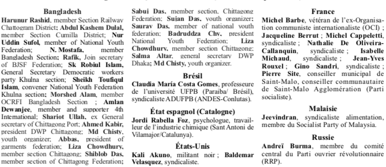 In our two previous newsletters, we published the list of 480 labour movement activists of every background from 39 countries who declared they supported the letter of clarification published by Daniel Gluckstein, editor of La Tribune des Travailleurs, against the slanderous campaign targeting the POID launched by Benoît Lahouze who claims to be acting on behalf of a “European Correspondence Committee” *