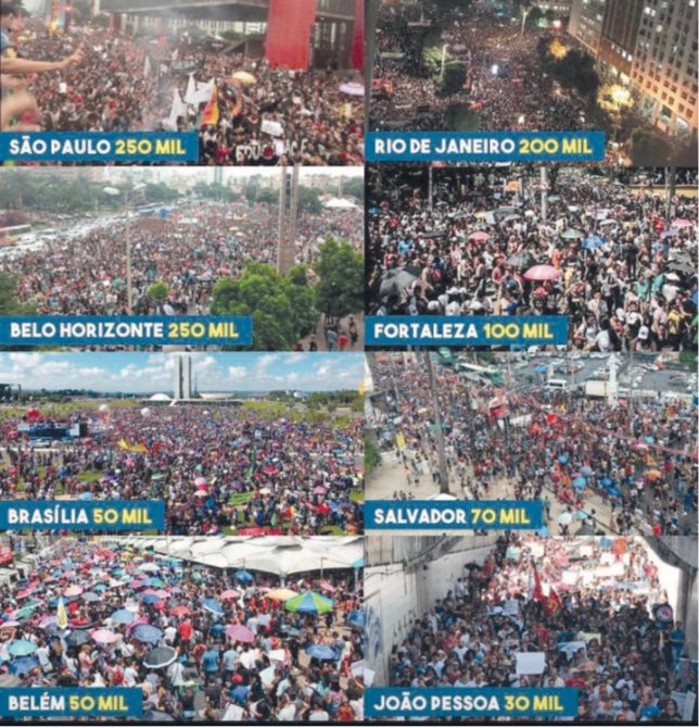 ¿Cómo infligir una derrota en Bolsonaro? En el mitin de huelguistas, los activistas que difunden el Jornal Resistir hicieron circular un volante que concluye de la siguiente manera: « Por nuestra parte, creemos que la solución está en la constitución, en todas partes, de comités por la huelga general, en el lugar de trabajo, en los barrios, en las escuelas y universidades, y en todas partes. Las asambleas generales por empresa y servicio pueden fomentar el establecimiento de dichos comités. Los profesores y los estudiantes pueden invitar a los padres a unirse a ellos. En las universidades, por ejemplo, se pueden formar « brigadas para la huelga general » para organizar asambleas, giras, reuniones de ciudad en ciudad para informar, convocar y organizar asambleas de huelga para la 14 junio La huelga general debe ser construida por la clase obrera y los propios jóvenes. Esta es la condición para derrotar al gobierno de Bolsonaro-Mourão e imponer el retiro del proyecto de reforma de las jubilaciones (PEC06 / 2019), recuperar los subsidios públicos a las universidades, poner fin a la privatización e impedir que el país camine hacia desastre ».