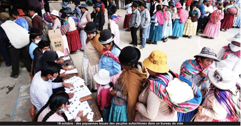 Esto no lo podemos entender si no partimos de la profundidad de la oposición contra el régimen resultante del golpe de Estado de noviembre de 2019. A solo una semana después del golpe, el ejército boliviano masacró a treinta y seis campesinos indígenas que marcharon de Cochabamba a La Paz para reivindicar sus derechos. La autoproclamada presidenta Áñez abandonó todos los cargos contra los militares, exentándolos de toda responsabilidad penal. Áñez prohibió la Wiphala, esta bandera multicolor que representa a los pueblos indígenas de Bolivia y de los Andes. Su odio racista, el de la élite que representa, contra el pueblo boliviano se extendía cotidianamente.
