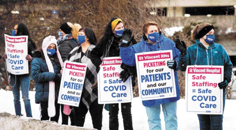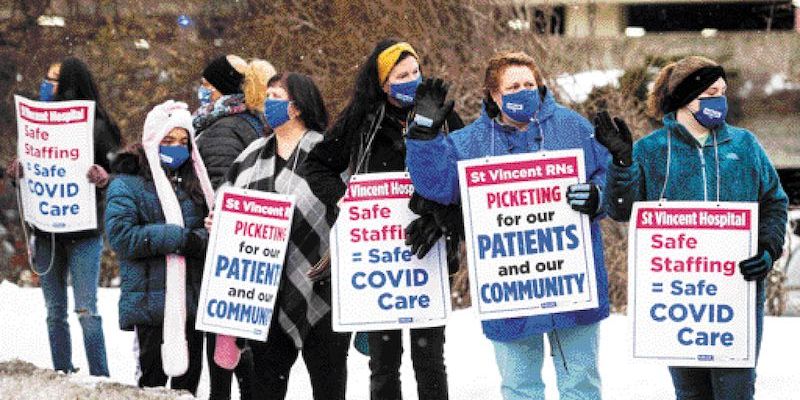 Desde hace 122 días, las 800 enfermeras del Hospital St. Vincent de Worcester (Massachusetts) están en huelga. ¿Por qué razón? Para exigir a la gran empresa sanitaria Tenet [*], propietaria de este hospital, que ponga a disposición los fondos suficientes para la contratación de personal y la adquisición de los medios necesarios para garantizar, en buenas condiciones de seguridad, la hospitalización de los pacientes, en particular en este periodo de pandemia. La seguridad del paciente fue el objetivo central del movimiento que movilizó a las enfermeras de San Vicente con el apoyo de su sindicato, el National Union of Healthcare Workers, al que está vinculada la Massachusetts Nurses Association. Para Tenet, en cambio, la única preocupación es el beneficio, un beneficio incrementado – como dice el comunicado de los huelguistas – por el hecho de que Tenet se ha embolsado 2 600 millones de dólares de dinero público en nombre de la lucha contra la pandemia.