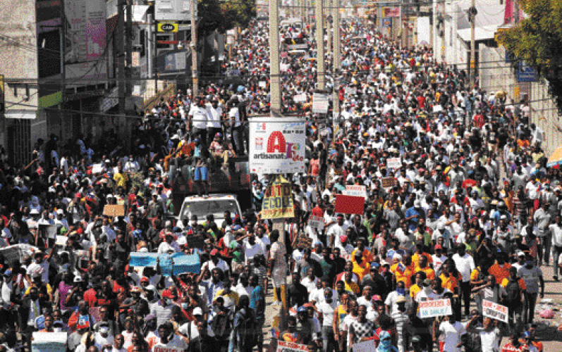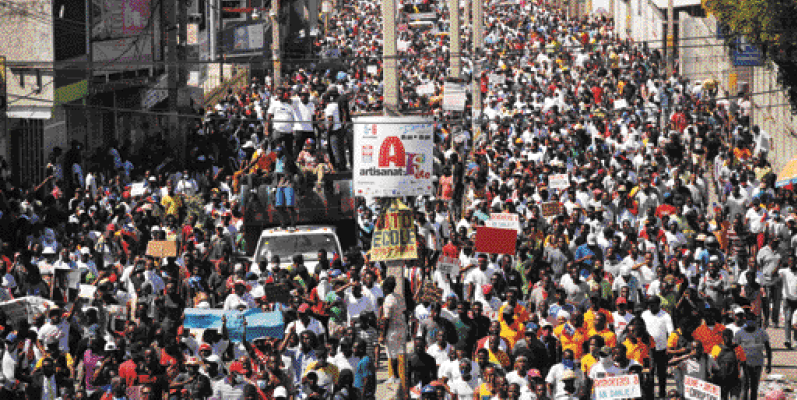 Estas manifestaciones alcanzaron su punto álgido el 6 de febrero de 2021, la víspera oficial del final del mandato de Jovenel Moïse… mientras que éste había afirmado, con el apoyo de la administración estadounidense, que el final de su mandato estaba fijado para el 7 de febrero de 2022. Desviando la protesta obrera y popular, una parte de la burguesía haitiana representada por los partidos de la « oposición » había intentado apropiarse de estas protestas para preparar una revolución de palacio que hubiera cambiado el equipo en el poder en Puerto Príncipe para preservar mejor el statu quo que ha visto, desde hace diecisiete años, al pueblo haitiano privado de su más elemental soberanía.